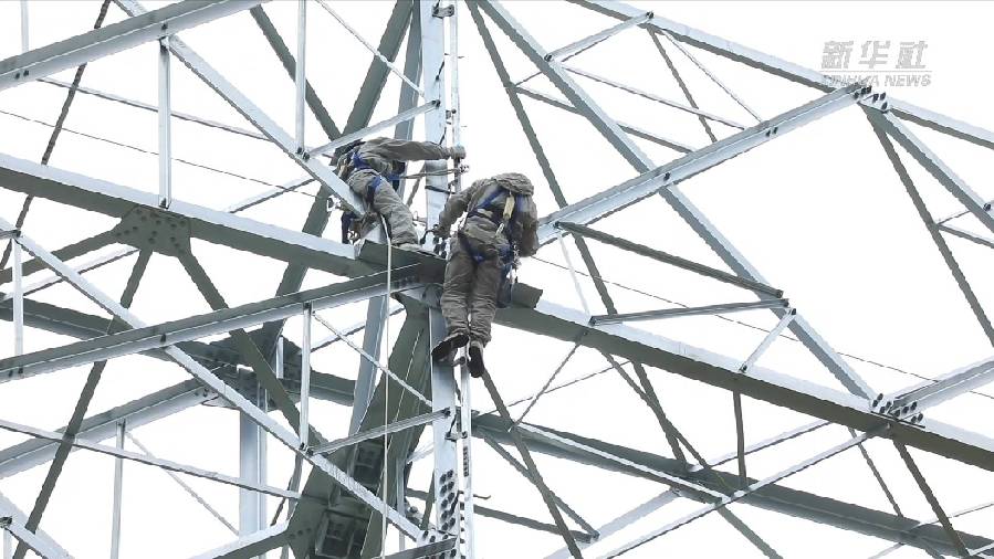 圖為國網(wǎng)青海超高壓公司輸電專業(yè)人員正在開展750千伏青塔I線14號(hào)鐵塔消缺工作。 董慶芳 攝