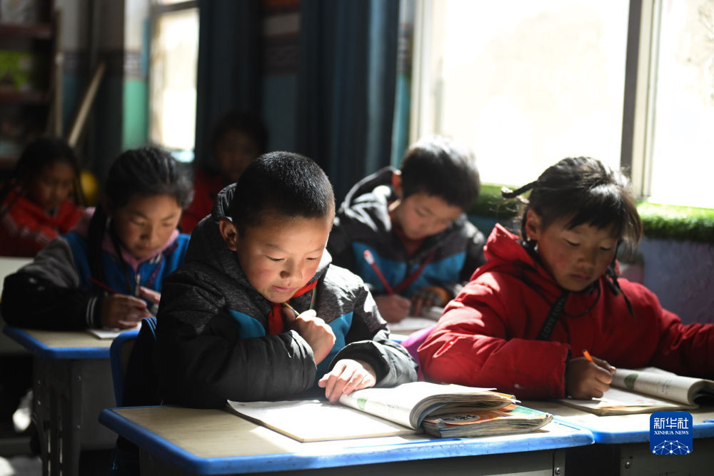 4月22日,青海省玉樹藏族自治州曲麻萊縣巴干鄉(xiāng)寄宿制小學(xué)的學(xué)生在課堂上學(xué)習(xí)。新華社記者 張龍 攝
