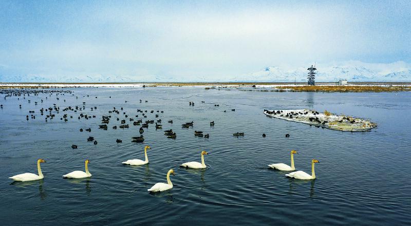 3月6日清晨,雪后陽光下,數(shù)千只黃鴨、赤麻鴨、藏鴛鴦、棕頭鷗、斑頭雁等飛禽在光影交錯(cuò)的若爾蓋花湖嬉戲翱翔,為初春的高原濕地平添靈動(dòng)與生機(jī)。[詳細(xì)] -