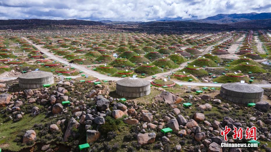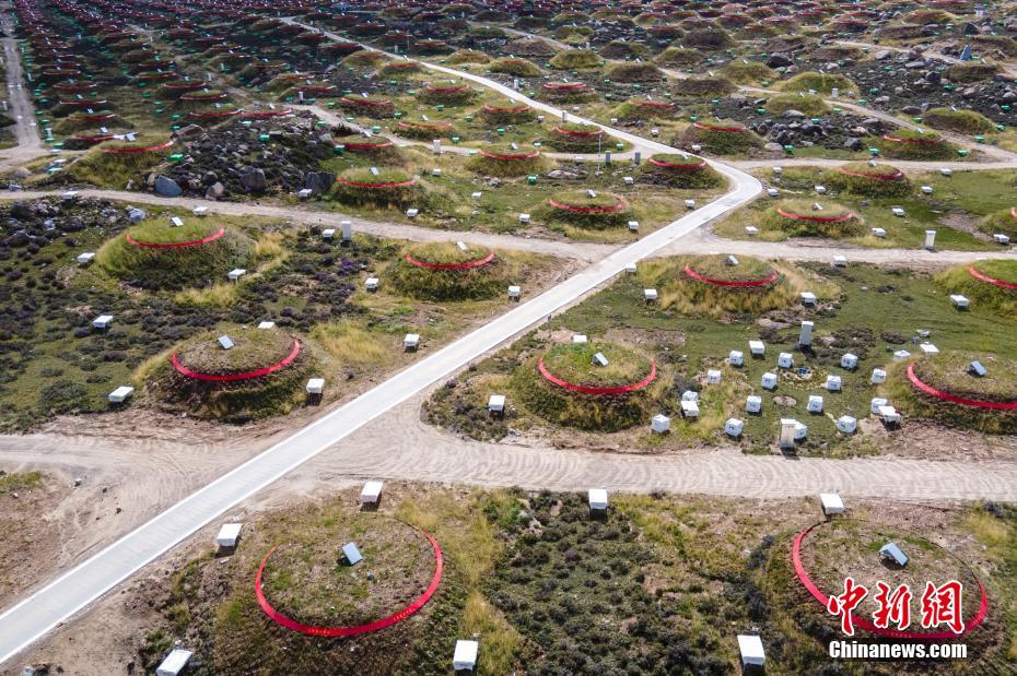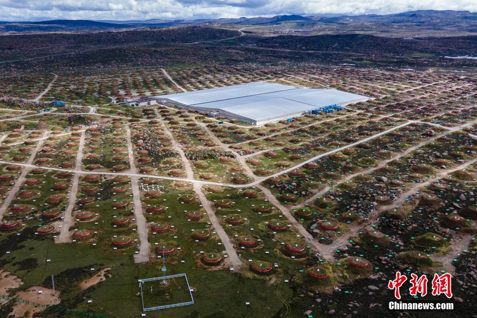 6月28日,四川稻城,稻城高海拔宇宙線觀測站均勻分布的探測器。海拔4410米的四川省甘孜州稻城縣海子山,5216個電磁粒子探測器和1188個繆子探測器,以及占地78000平方米的水切倫科夫探測器有序分布在1.36平方公里范圍,十分壯觀,這是中國建設(shè)的第三代高山宇宙線實(shí)驗(yàn)站。 中新社記者 劉忠俊 攝