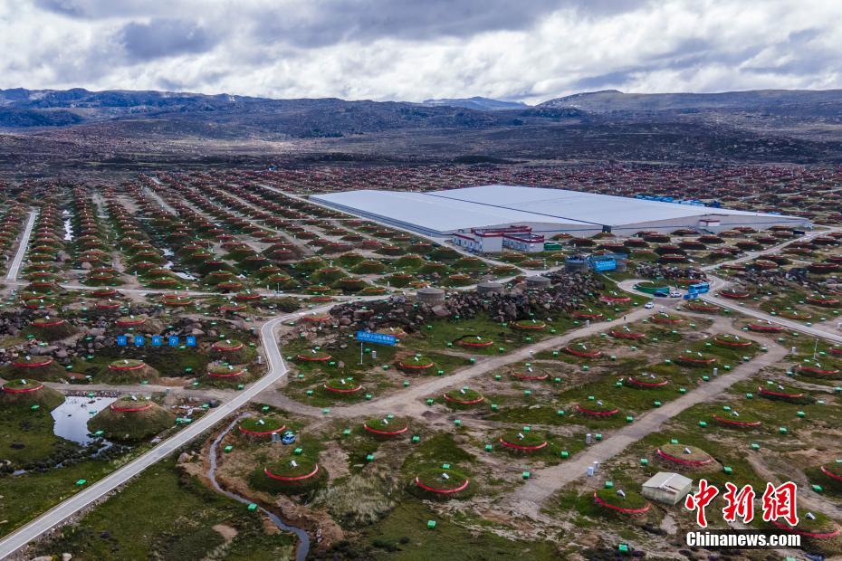 6月28日,四川稻城,航拍稻城高海拔宇宙線觀測站。海拔4410米的四川省甘孜州稻城縣海子山,5216個電磁粒子探測器和1188個繆子探測器,以及占地78000平方米的水切倫科夫探測器有序分布在1.36平方公里范圍,十分壯觀,這是中國建設(shè)的第三代高山宇宙線實(shí)驗(yàn)站。中新社記者 劉忠俊 攝