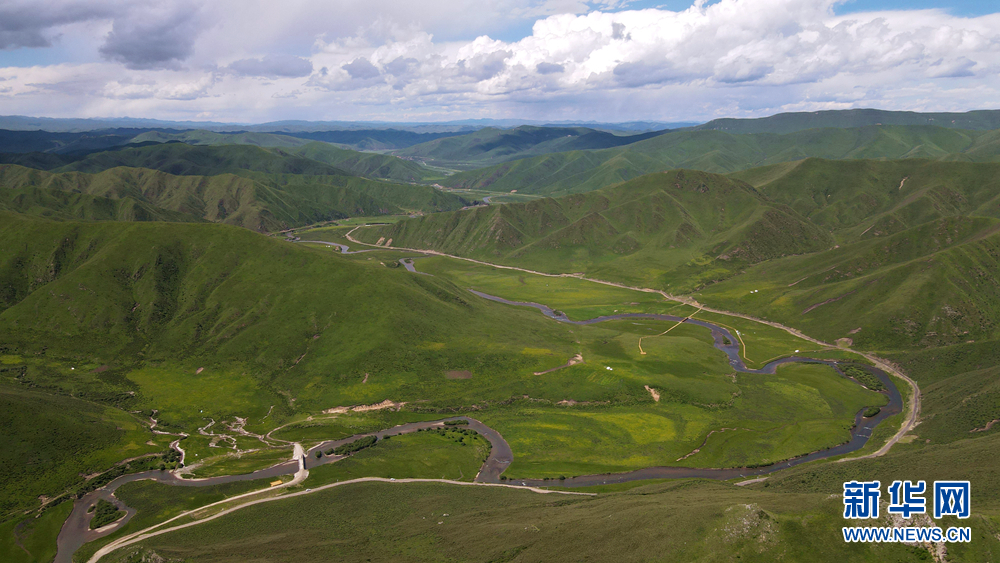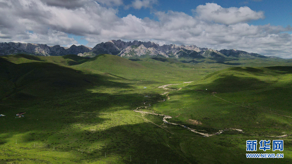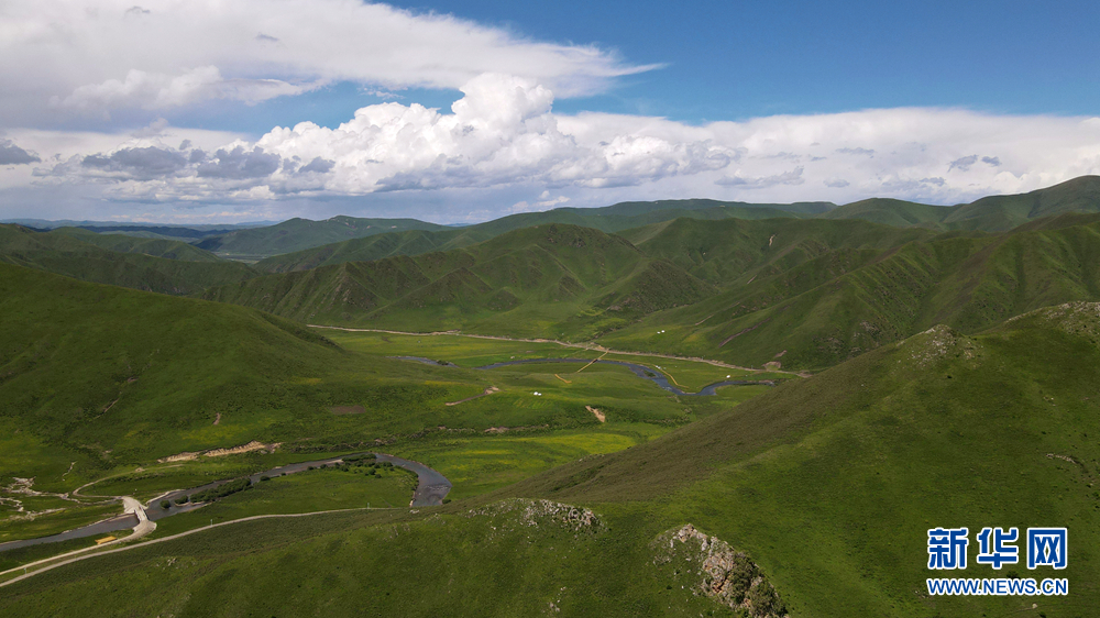 時值盛夏,青海省黃南藏族自治州河南蒙古族自治縣境內(nèi)的青海洮河源濕地公園,奇峰聳立、水草豐美。藍(lán)天白云之下,高山與草原相映,風(fēng)光旖旎、如詩如畫。