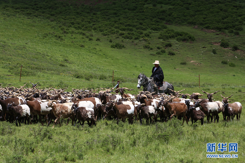 牧民在青海洮河源國家濕地公園內(nèi)放牧。新華網(wǎng) 卡婭梅朵 攝