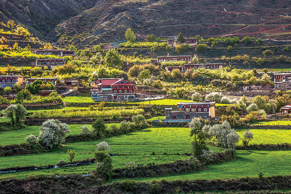 盛夏時(shí)節(jié),在被稱作“藏民居藝術(shù)之都”的四川省甘孜藏族自治州道孚縣鮮水河畔,一幢幢整齊劃一、白墻棕柱的藏房,好似身著盛裝的藏族少女,點(diǎn)綴在天地間。