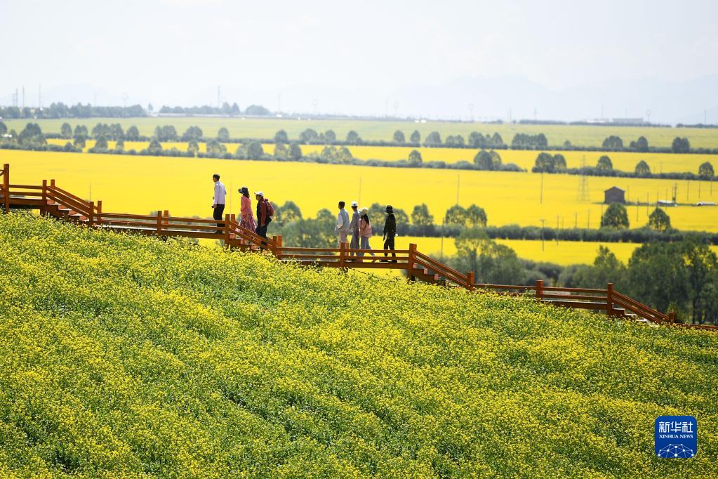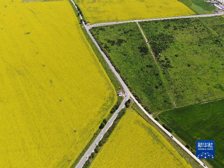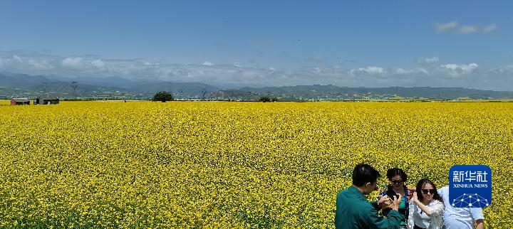 盛夏時節(jié),從青海省會西寧出發(fā),沿張汶高速公路驅(qū)車1個多小時,就進(jìn)入門源回族自治縣境內(nèi)。油菜花鋪展出“金色花海”,天地間融為一幅濃墨重彩的天然畫卷。