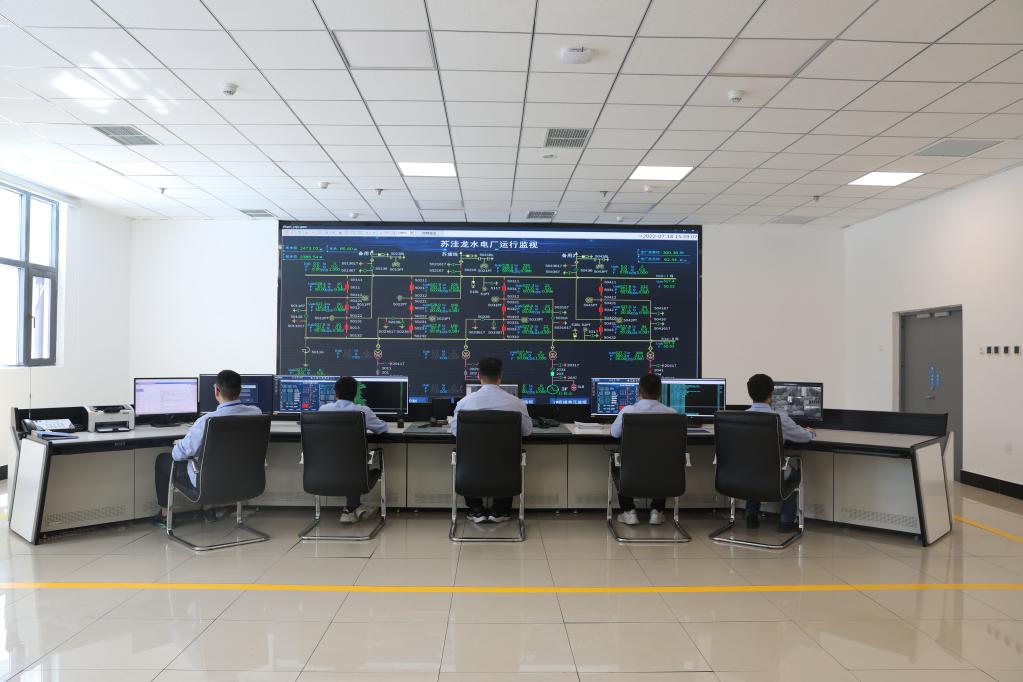 在蘇洼龍水電廠中控室,工作人員正在監(jiān)控機組運行情況。(7月18日攝,受訪單位供圖)