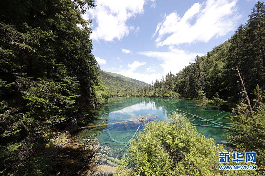 四川省阿壩藏族羌族自治州九寨溝縣漳扎鎮(zhèn)和大錄鄉(xiāng)之交的神仙池景區(qū)。神仙池地處川西北高原岷山山脈南段,與九寨溝景區(qū)遙遙相望。(7月18日攝)