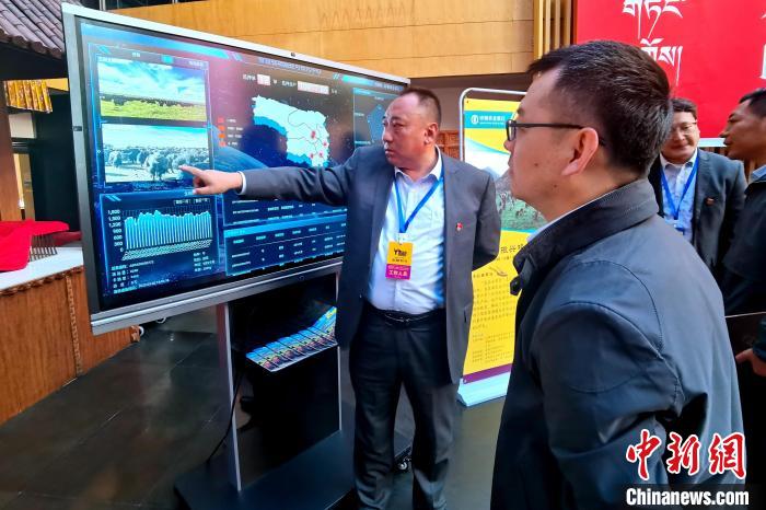 圖為工作人員為客商介紹玉樹牦牛智慧牧場系統(tǒng)。李雋 攝