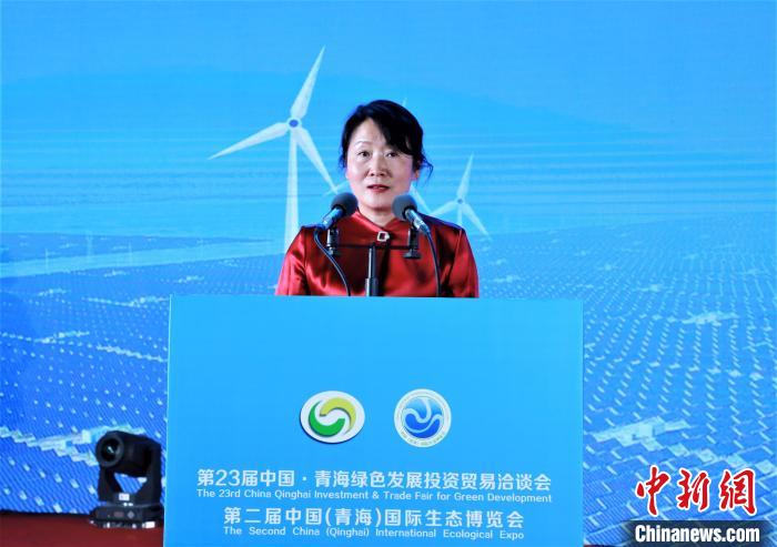 圖為海南州政府副州長獨金萍進行投資環(huán)境說明推介?!☆佨?攝