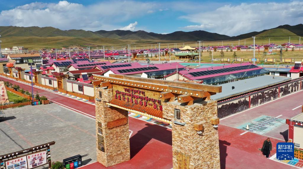 這是甘肅省甘南藏族自治州碌曲縣尕海鎮(zhèn)尕秀村村貌(無人機(jī)照片,2021年9月9日攝)。新華社記者 陳斌 攝