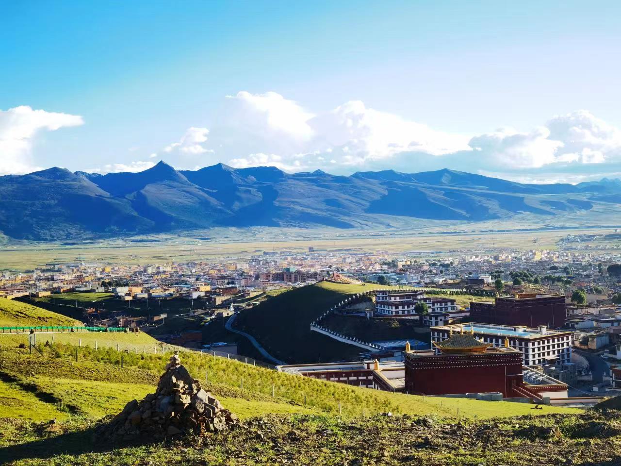 在東山頂俯瞰理塘縣城。人民網(wǎng)記者 張若涵 攝