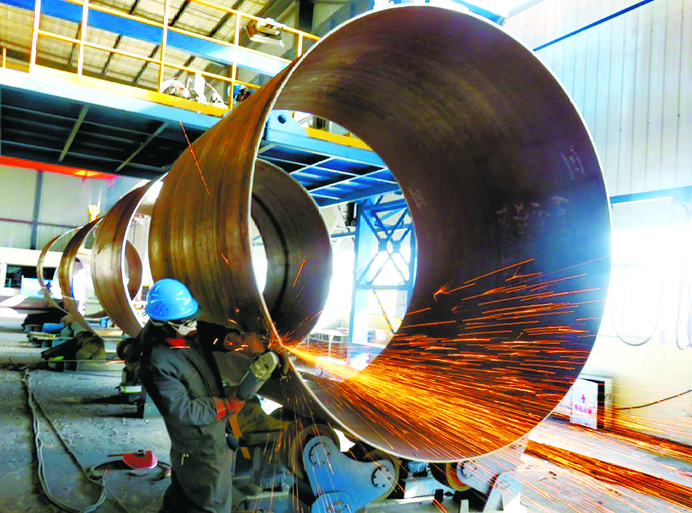 在青海華匯新能源有限公司的生產(chǎn)車間里,工人正在切割制作風(fēng)力發(fā)電組件。蘇烽 攝