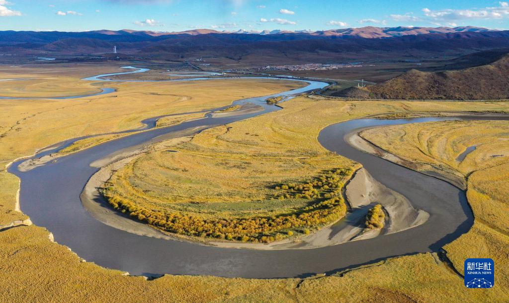 這是10月19日在四川省阿壩藏族羌族自治州若爾蓋縣拍攝的熱曲河(無人機照片)。新華社記者 王曦 攝