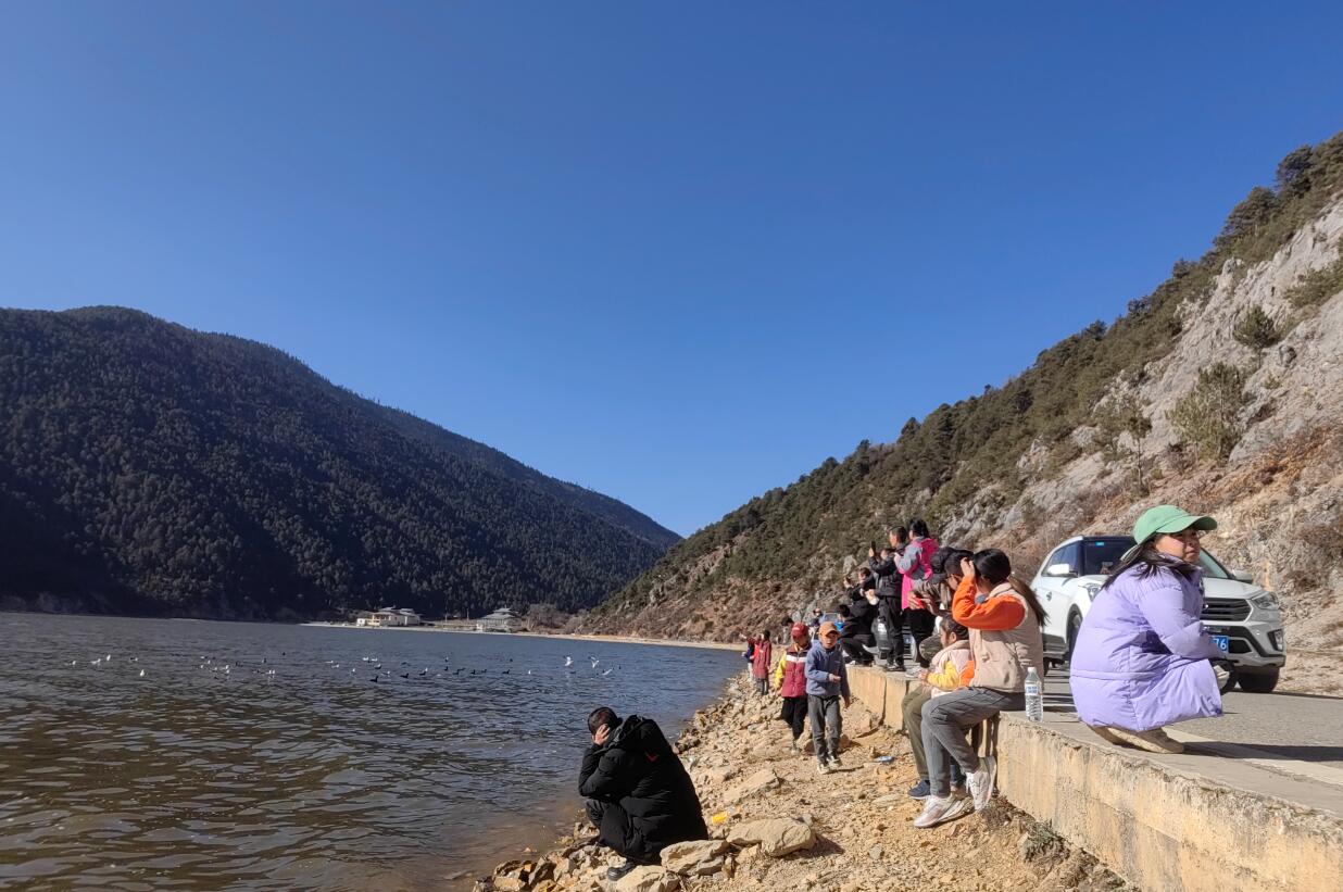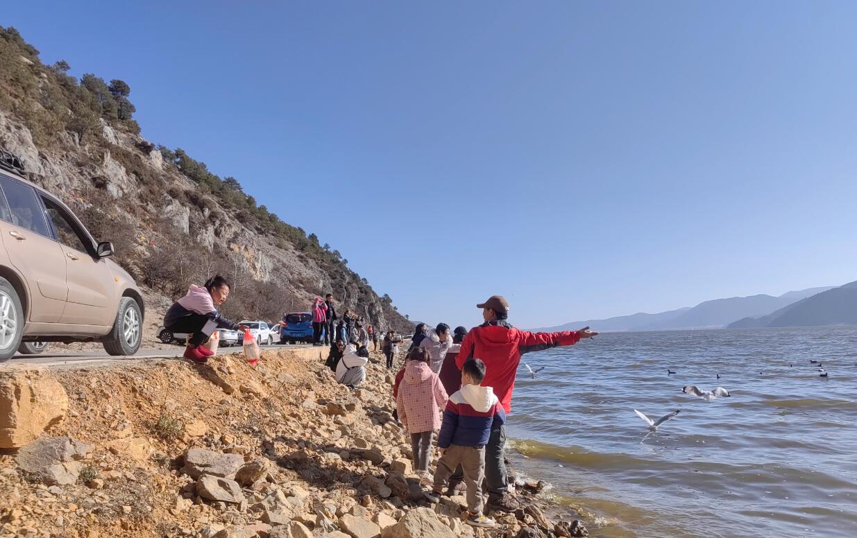 1月28日,記者在納帕海自然保護區(qū)看到成群的海鷗在這里盤旋飛舞,不少游客手托面包進行投喂,一幅幅人與自然和諧共生的美好畫卷徐徐鋪開。“第一次來香格里拉,看到不少游客在這里投喂海鷗,我也買一袋來試試?!庇慰屯蹊b詳說。