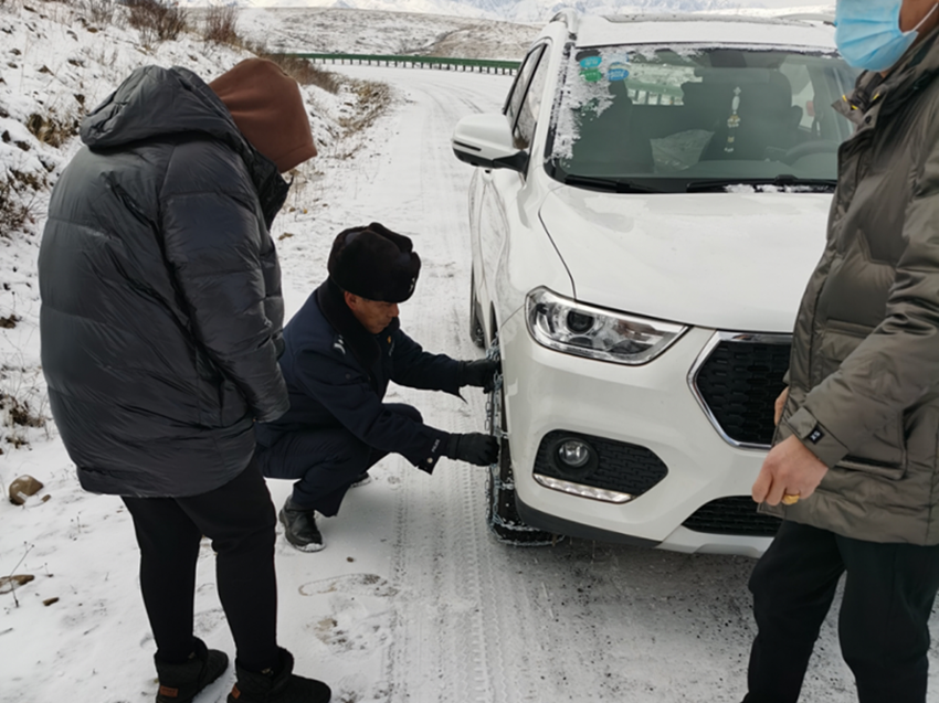 一西多吉幫助過路車輛掛鏈條