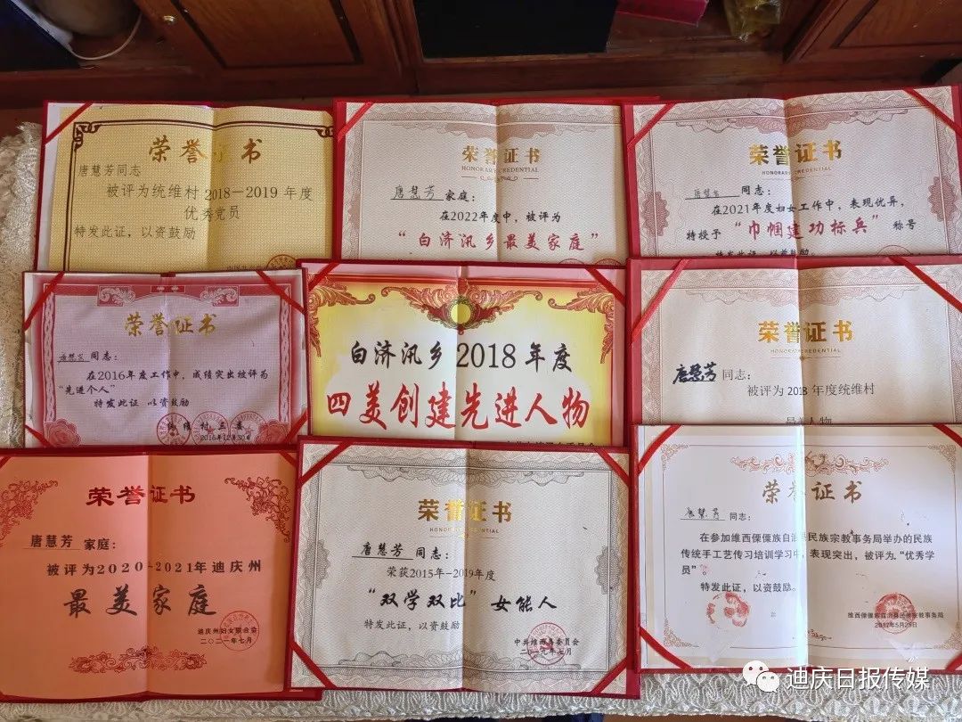 唐慧芳孝老愛親的精神不僅讓自己的公公婆婆能夠安享晚年幸福生活,也用實際行動感染了晚輩。她的家庭多次被州婦聯(lián)評定為“最美家庭”,她多次被縣、鄉(xiāng)、村評定為“最美人物”“雙學雙比”女能人、“優(yōu)秀黨員”“巾幗建功標兵”“先進個人”。她用她的樸實真誠詮釋著中華兒女尊老愛老、孝老愛親的優(yōu)秀品質(zhì),她用她的無私奉獻踐行了一名共產(chǎn)黨員甘當群眾的“貼心人”的莊嚴承諾!