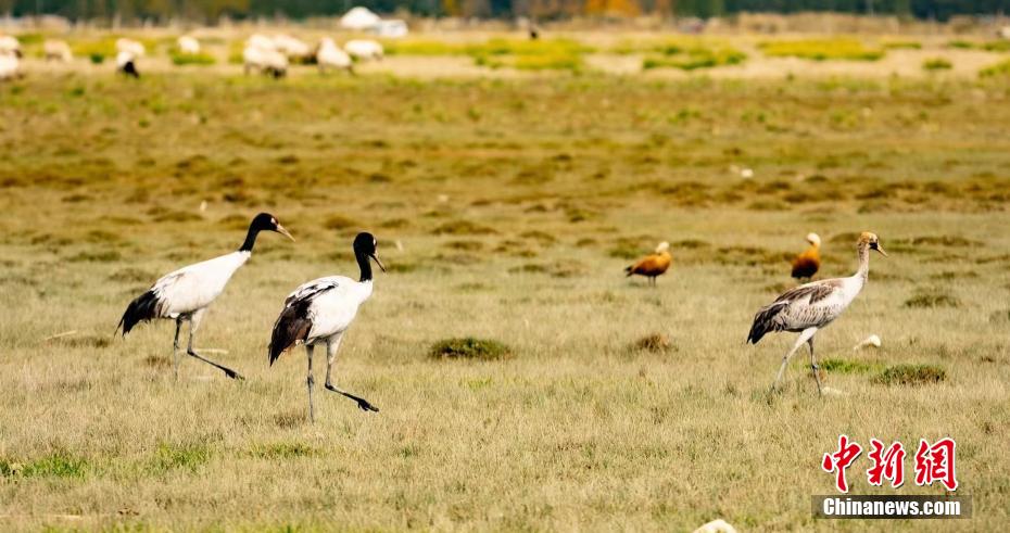 近日,在柴達(dá)木盆地青海烏蘭縣東大灘濕地附近,棲息著六七只黑頸鶴,它們或擠在一起沐浴秋日的暖陽,或三五成群覓食嬉戲,或踏著黑色細(xì)長(zhǎng)的腿閑庭信步,優(yōu)雅、從容,悠然自在地散步。[詳細(xì)] -