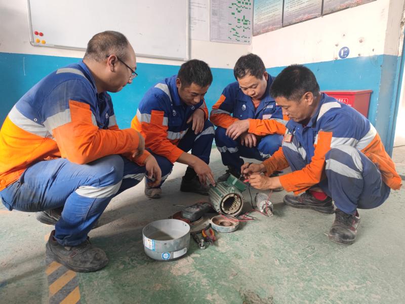 華新水泥(迪慶)有限公司電修班組現(xiàn)有電修人員10人,其中僅有3人為建廠時期就入廠的老員工,電修班組成員多為中專及小學(xué)學(xué)歷。許多員工剛剛進入班組的時候都是“門外漢”,在學(xué)歷參差不齊、技術(shù)良莠不一的情況下,班組把“傳幫帶”作為提升技能的關(guān)鍵一招,堅持“老帶新幫助”“一對一指導(dǎo)”“手把手教學(xué)”,從一個零件到一個操作流程,從規(guī)章制度到安全生產(chǎn),“師傅們”都耐心細致、毫無保留地傳授。而“徒弟們”遇到解不開的問題和現(xiàn)場工作中的難題,都虛心地向師傅們請教。正是在這種濃厚的“傳幫帶”氛圍下,班組的技術(shù)攻堅能力突飛猛進。