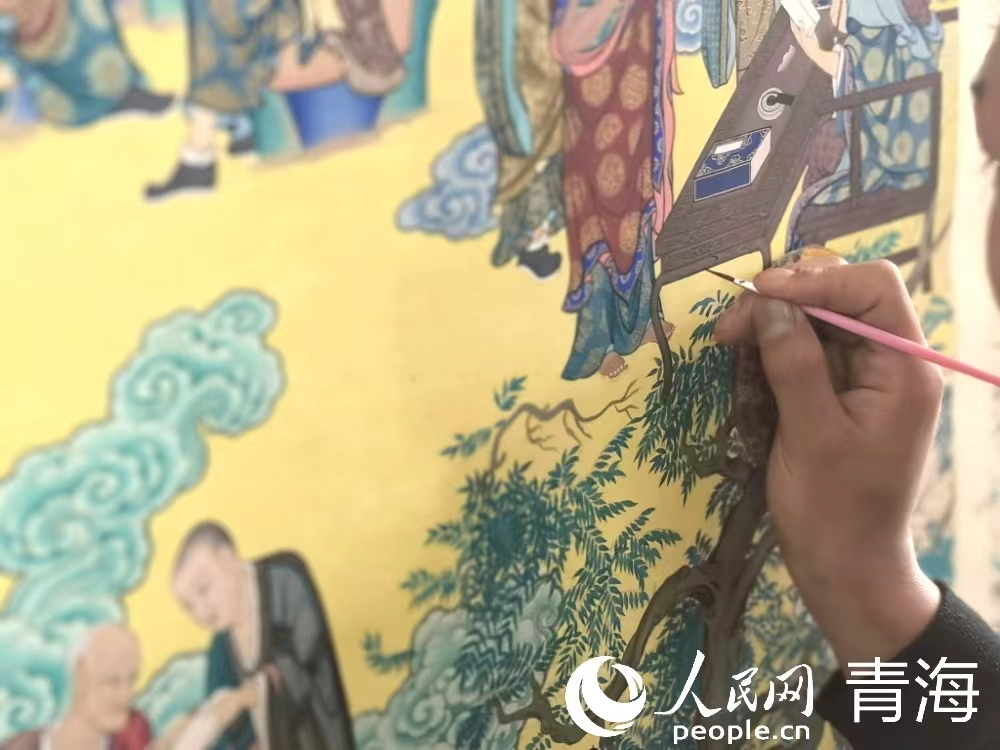 桑杰卡家中共四口人,守著5畝地,僅靠種小麥過(guò)活,收入微薄。同仁市鄉(xiāng)村振興幫扶車間的設(shè)立,讓這原本拮據(jù)的四口之家看到了新的出路,桑杰卡和姐姐來(lái)到幫扶車間之一的龍樹畫苑學(xué)習(xí)唐卡技藝。此后,日子有了變化:“來(lái)這的第一年有8000多的補(bǔ)助,食宿不用自己花錢,經(jīng)過(guò)八九年的學(xué)習(xí)和沉淀,現(xiàn)在我一年收入能有10萬(wàn)多?!?/p>