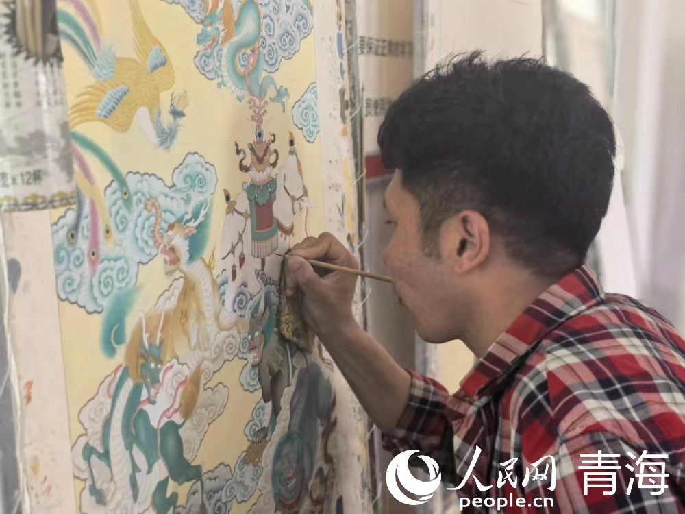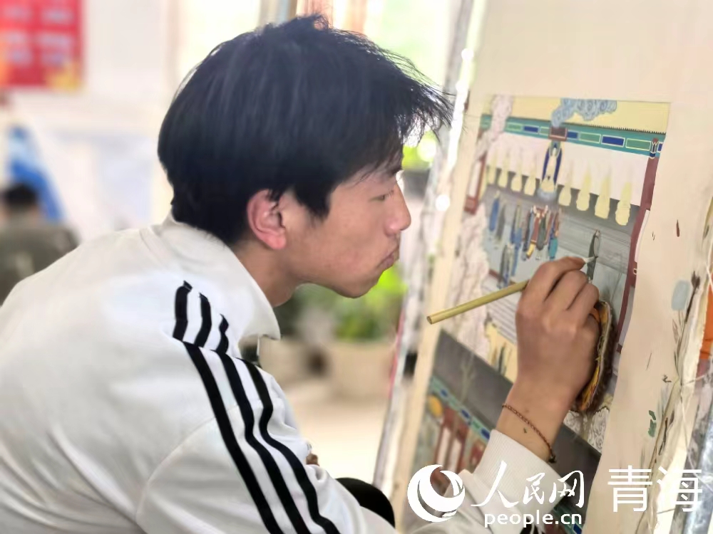 專心作畫的多杰東智。人民網(wǎng) 馬可欣 攝