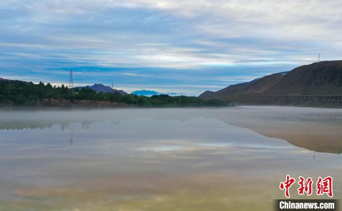 圖為降雨過后,黃河青海尖扎段的河面上升起薄霧。馬銘言 攝