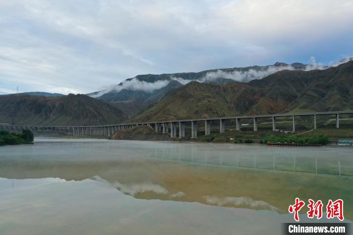 航拍降雨過后,黃河青海尖扎段的河面上升起薄霧。馬銘言 攝