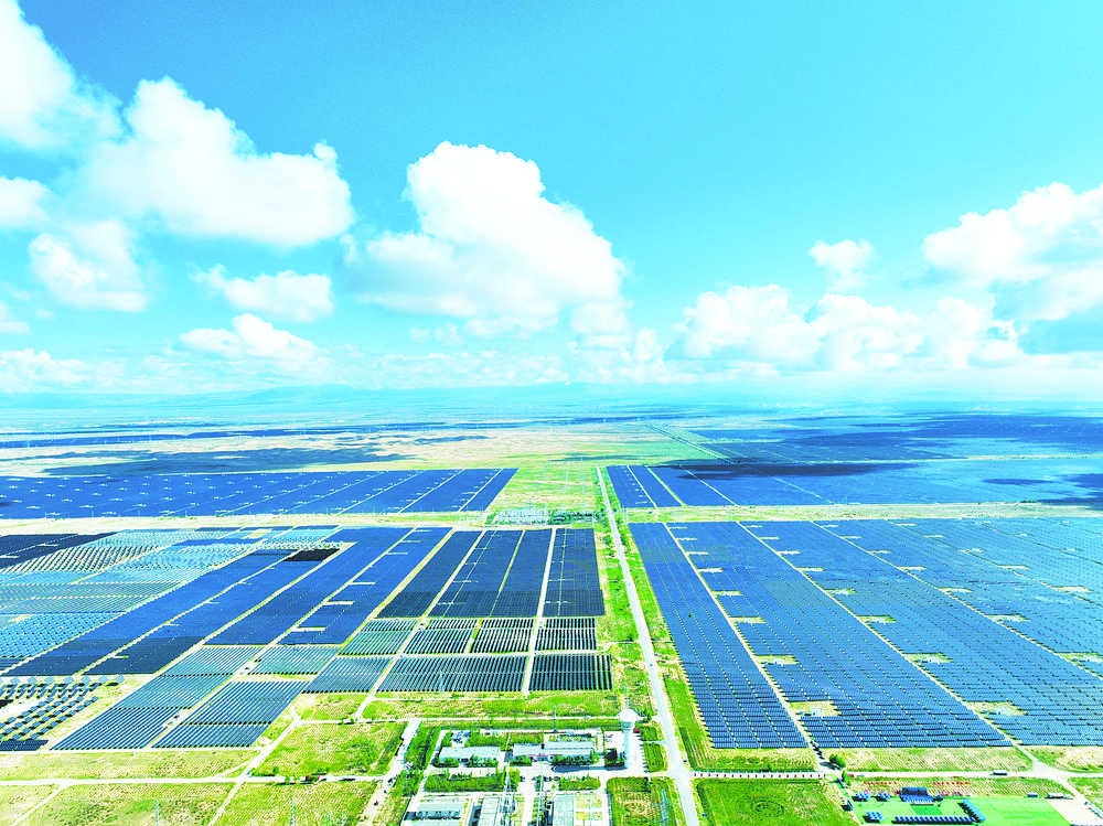 曾經(jīng),漫漫黃沙,阻隔了陽(yáng)光和希望;如今,悠悠綠草,帶來(lái)了低碳與高質(zhì)量發(fā)展,當(dāng)光伏與黃沙相遇,從前幾乎是四季不長(zhǎng)草的荒灘,變身成為科技感十足的“光伏海”,光伏板浩瀚萬(wàn)頃,如湛藍(lán)的湖水波光粼粼,地面牧草郁郁蔥蔥,生態(tài)優(yōu)美,令人震撼。