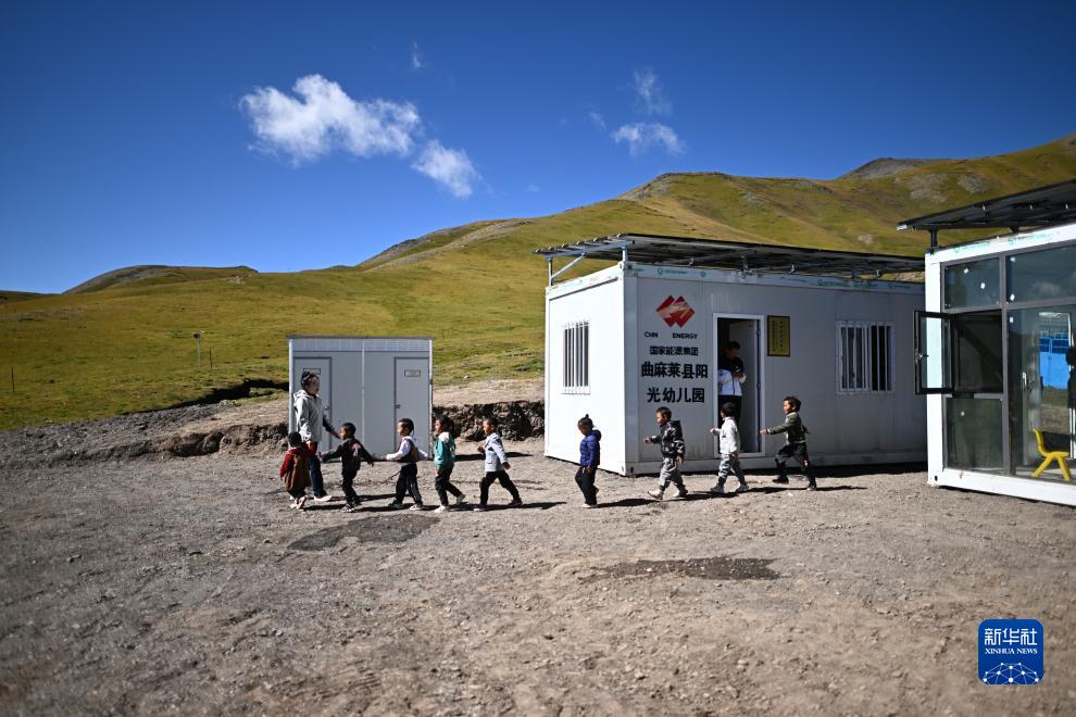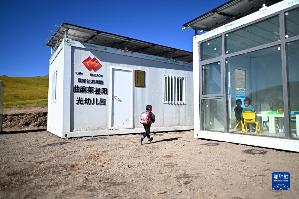 作為曲麻萊縣定點(diǎn)幫扶單位,國家能源集團(tuán)自2022年起累計(jì)投入1350萬元,在曲麻萊縣建設(shè)15所陽光幼兒園。陽光幼兒園為集裝箱式房屋,配備屋頂離網(wǎng)儲(chǔ)能光伏系統(tǒng),可以滿足供暖、照明等需求。幼兒園招收居住在周邊牧場的兒童,讓孩子們在離家不遠(yuǎn)處就能接受學(xué)前教育。