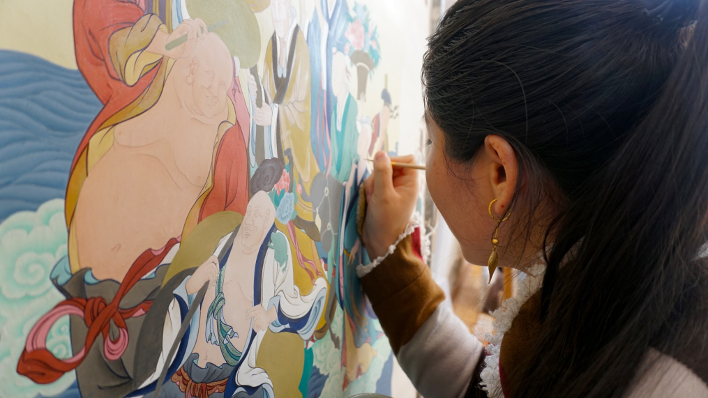 “熱貢”在藏語(yǔ)中意為“金色谷地”。熱貢桑杰唐卡畫(huà)院坐落在有著“熱貢藝術(shù)之鄉(xiāng)”美譽(yù)的青海省黃南藏族自治州同仁市,2017年建成運(yùn)行,是當(dāng)?shù)匾患曳俏镔|(zhì)文化遺產(chǎn)綜合傳習(xí)中心。隨著熱貢唐卡知名度不斷提高,全國(guó)各地慕名而來(lái)的游客也越來(lái)越多。