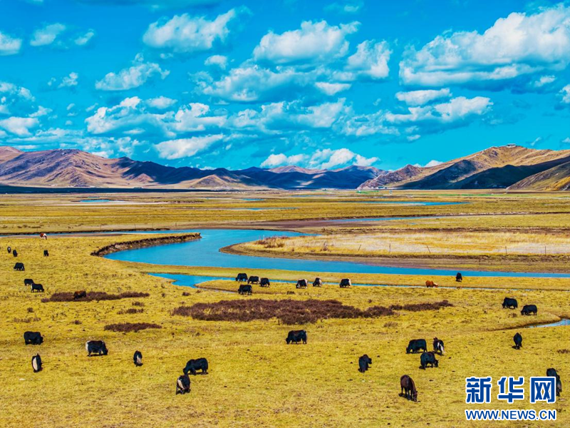 漫澤塘濕地大草原牛羊成群。新華網(wǎng) 夏雪東爾 攝