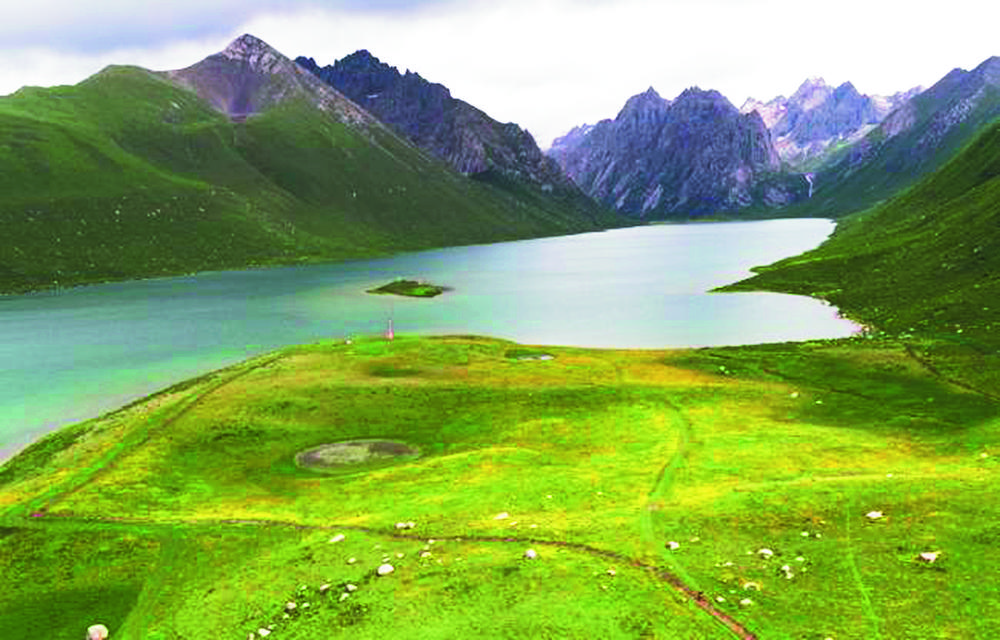 拆除棧道后,年保湖周邊植被開(kāi)始恢復(fù)。果洛州生態(tài)環(huán)境局供圖