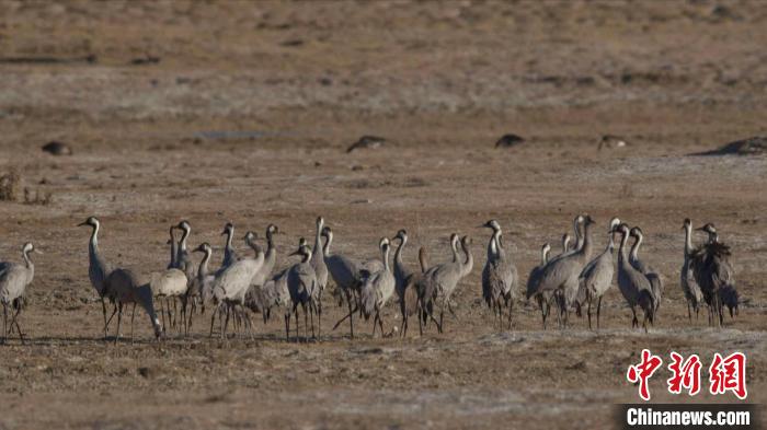 珍稀鳥類黑頸鶴、灰鶴現(xiàn)身青海格爾木