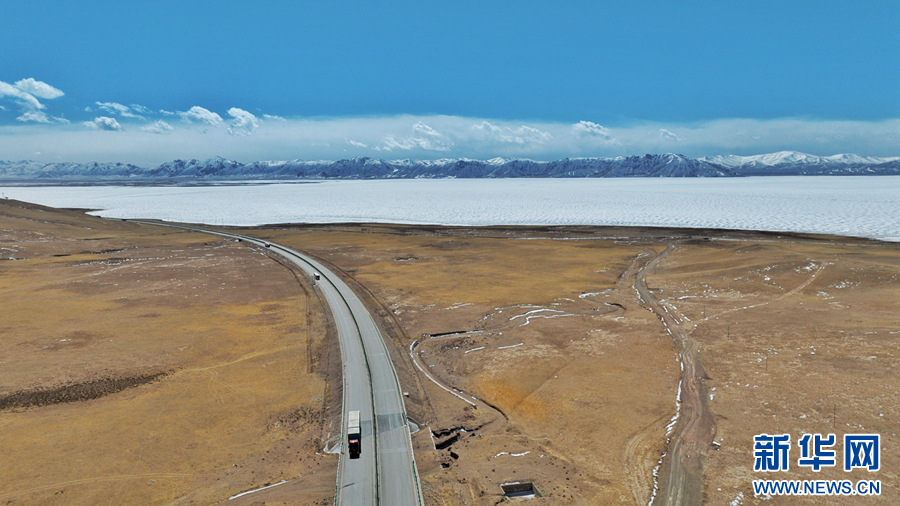 圖為3月15日航拍的冬格措納湖。新華網 宋忠勇 攝