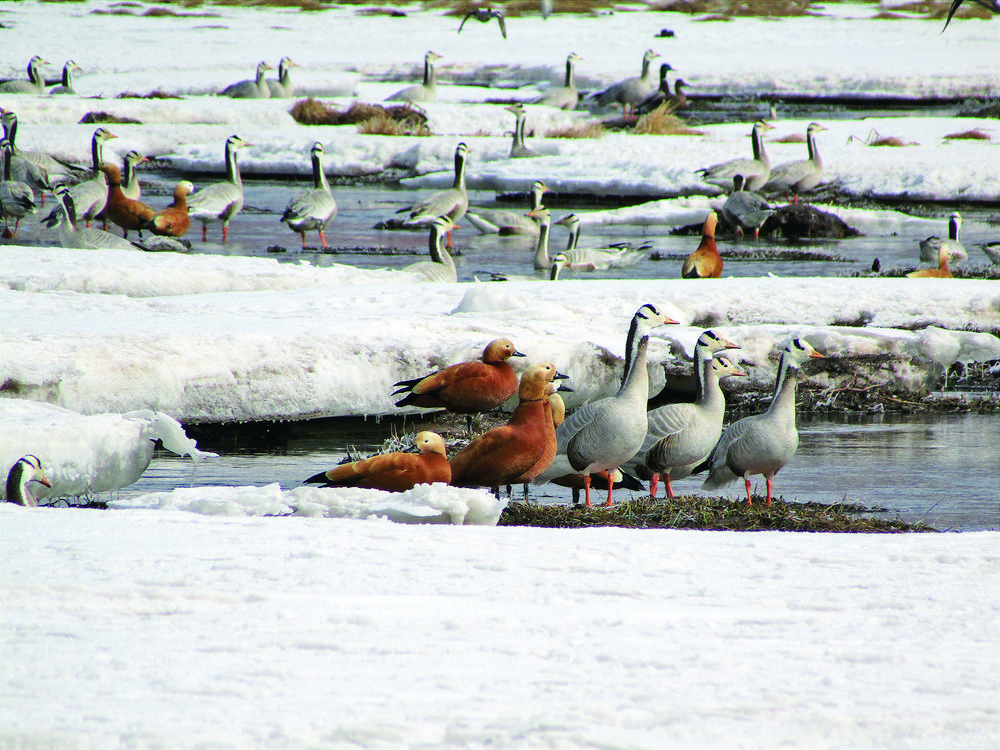 青海隆寶灘國際重要濕地迎來春天首批赤麻鴨