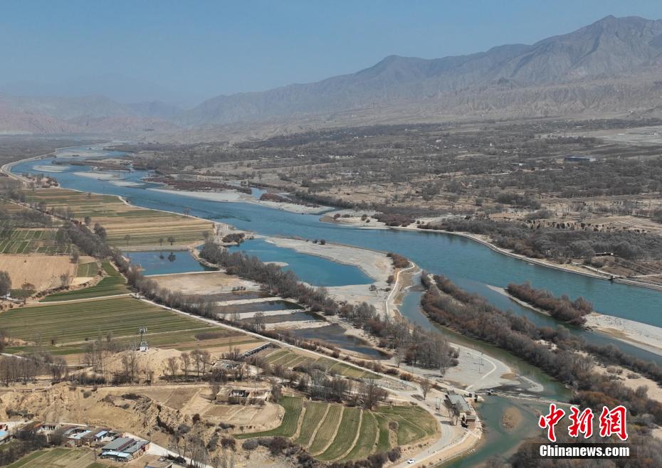 3月19日,航拍青海省海南藏族自治州貴德縣境內(nèi)黃河。馬銘言 攝