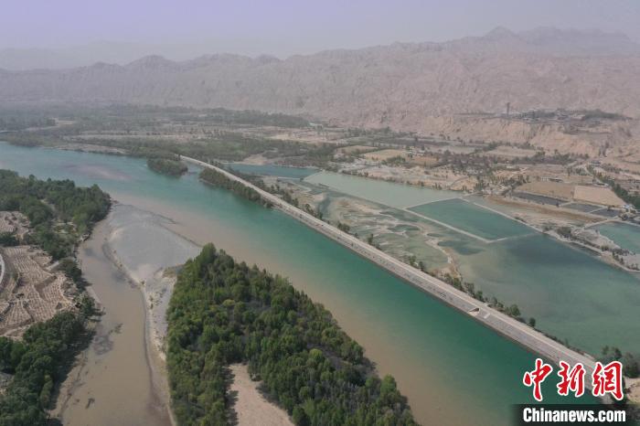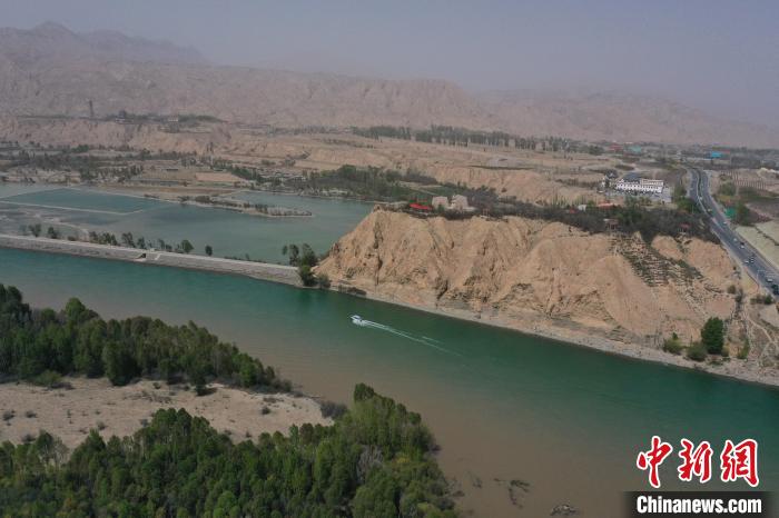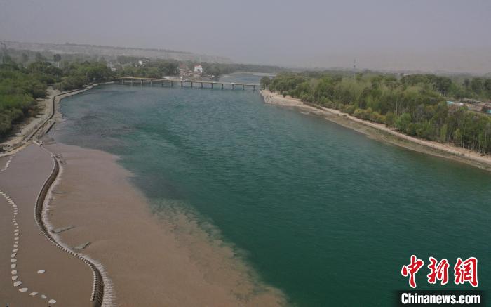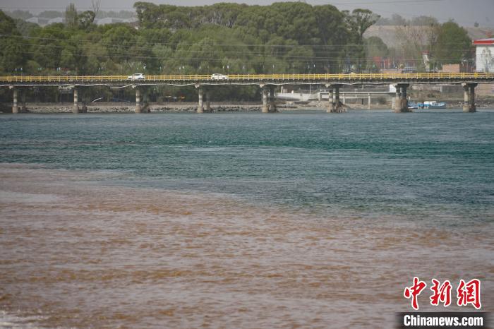 圖為青海省海南藏族自治州貴德縣境內(nèi)黃河現(xiàn)“涇渭分明”景觀。 馬銘言 攝