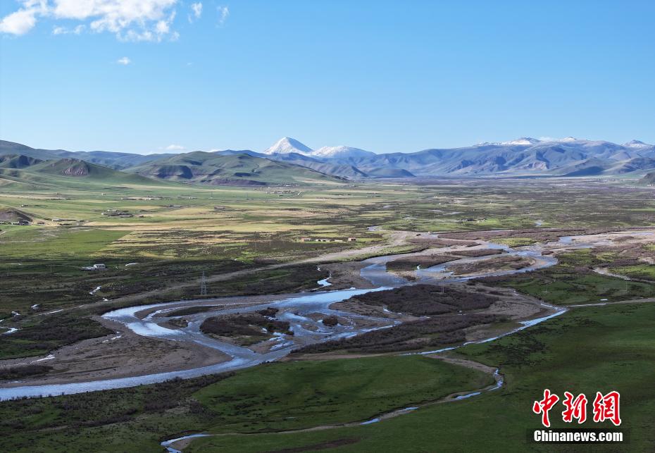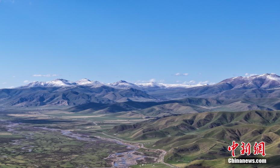 6月4日,航拍青海省海北藏族自治州剛察縣夏日草原秀美風(fēng)光。馬銘言 攝
