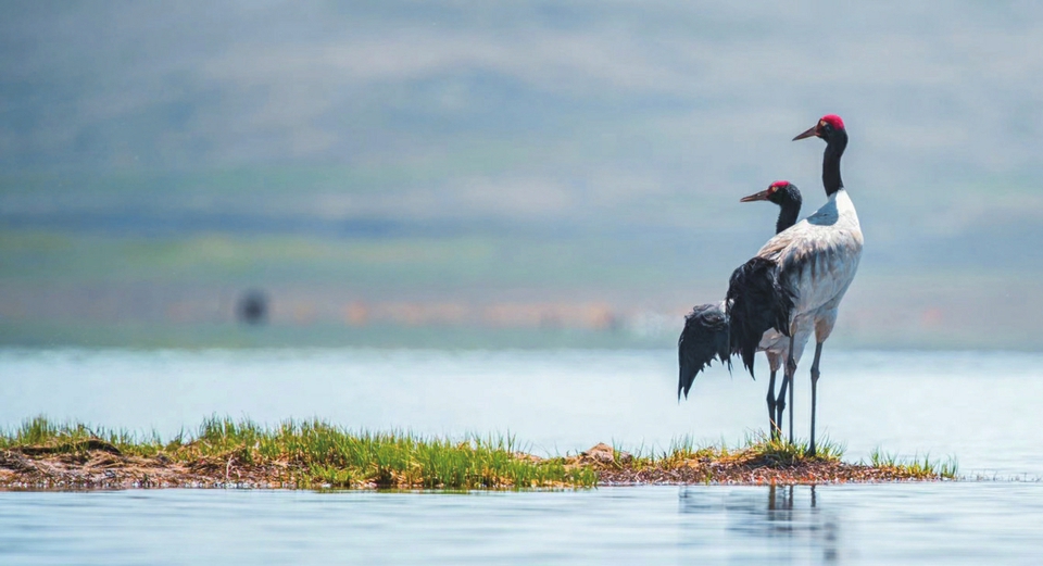 四川若爾蓋濕地國家級保護(hù)區(qū)內(nèi)的黑頸鶴。受訪者供圖