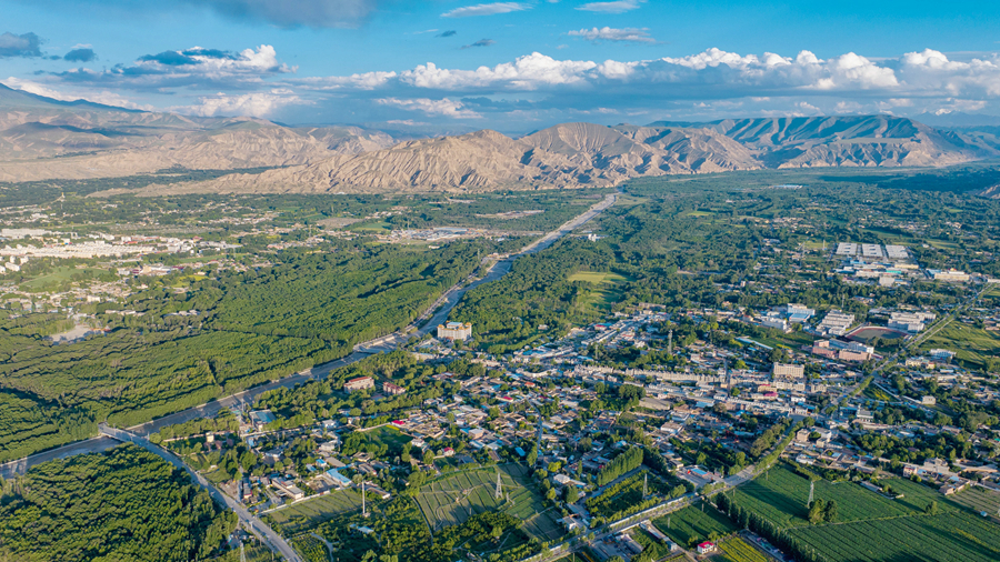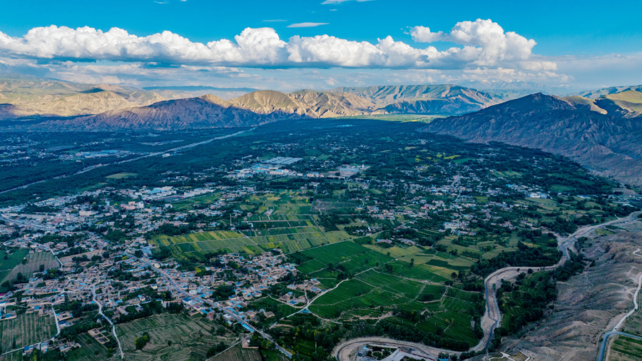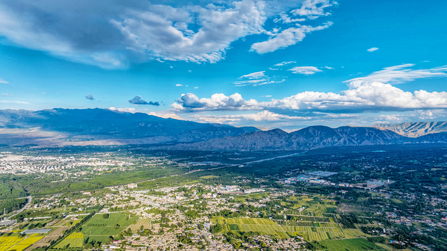 貴德縣城一角(無人機照片)。新華網(wǎng) 宋忠勇 攝