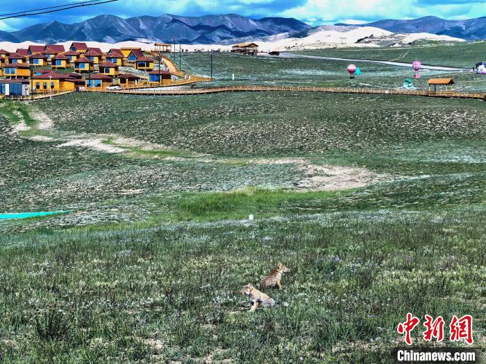 7月3日,記者在青海湖北岸的青海省海北藏族自治州海晏縣金沙灣,近距離拍攝到藏狐“一家五口”在景區(qū)木棧道下出入。景區(qū)工作人員介紹,4只小藏狐在媽媽的帶領(lǐng)下住在棧道下面,不時在棧道旁的草地上嬉戲打鬧,景區(qū)游客可近距離拍攝到這可愛畫面。據(jù)記者觀察,藏狐一家看到人類后并不懼怕,還與人類對視“互動”,最近距離不足兩米。