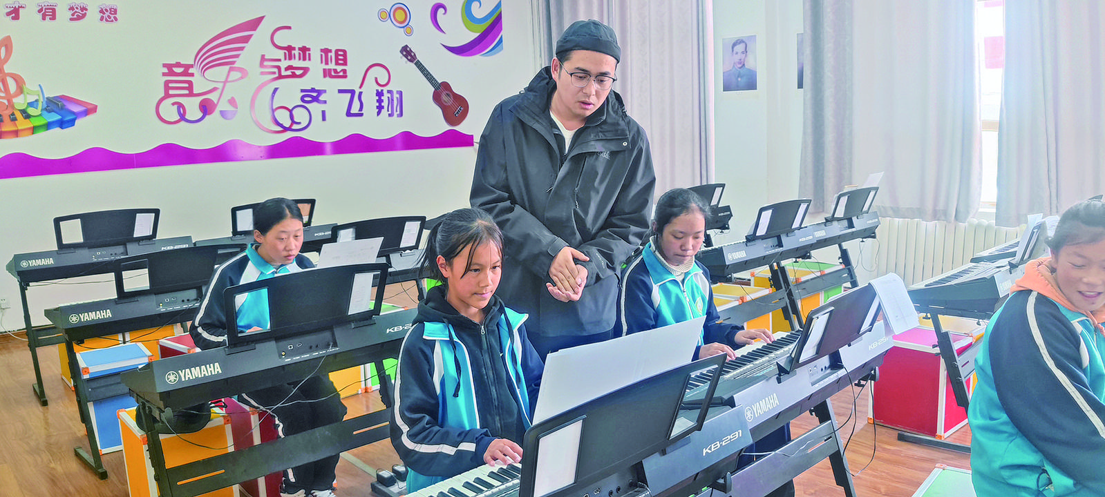 2023年12月,在上海援青團(tuán)隊(duì)成員、上海音樂(lè)學(xué)院教師湯聲聲的倡導(dǎo)下,上海音樂(lè)學(xué)院鼎力支持下,中國(guó)首支藏族青少年管樂(lè)團(tuán)“果洛州青少年管樂(lè)團(tuán)”在果洛西寧民族中學(xué)成立。今年“五一”期間,這支管樂(lè)團(tuán)亮相中國(guó)第十七屆優(yōu)秀管樂(lè)團(tuán)隊(duì)展演,首秀便從118支團(tuán)隊(duì)中脫穎而出,榮獲“中華杯”優(yōu)秀管樂(lè)團(tuán)展演團(tuán)隊(duì)獎(jiǎng)。
