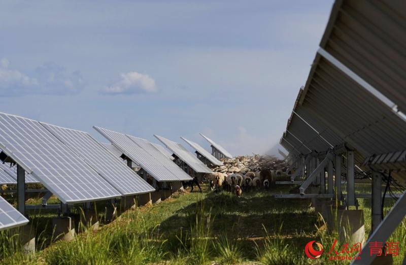 光伏園區(qū)內(nèi)活動的羊群。人民網(wǎng)記者 甘海瓊 攝