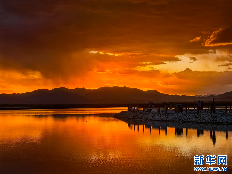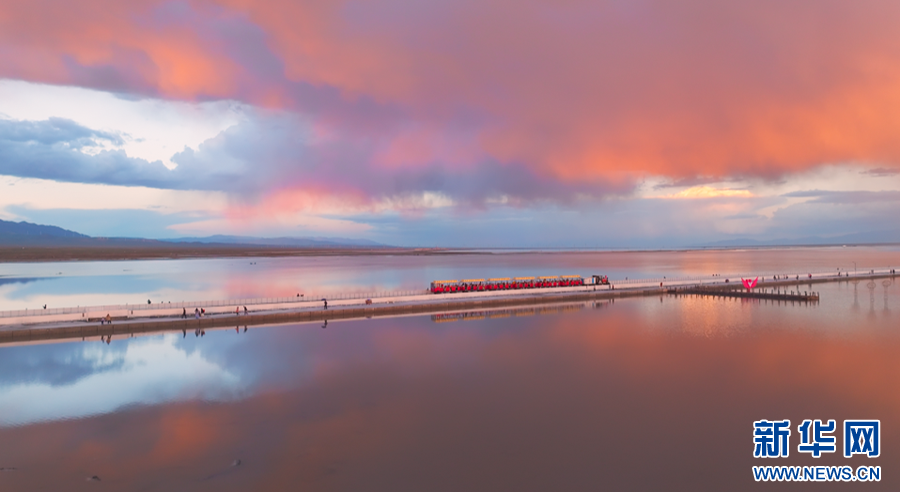 茶卡鹽湖景區(qū)的晚霞。新華網(wǎng) 張錦帆 攝