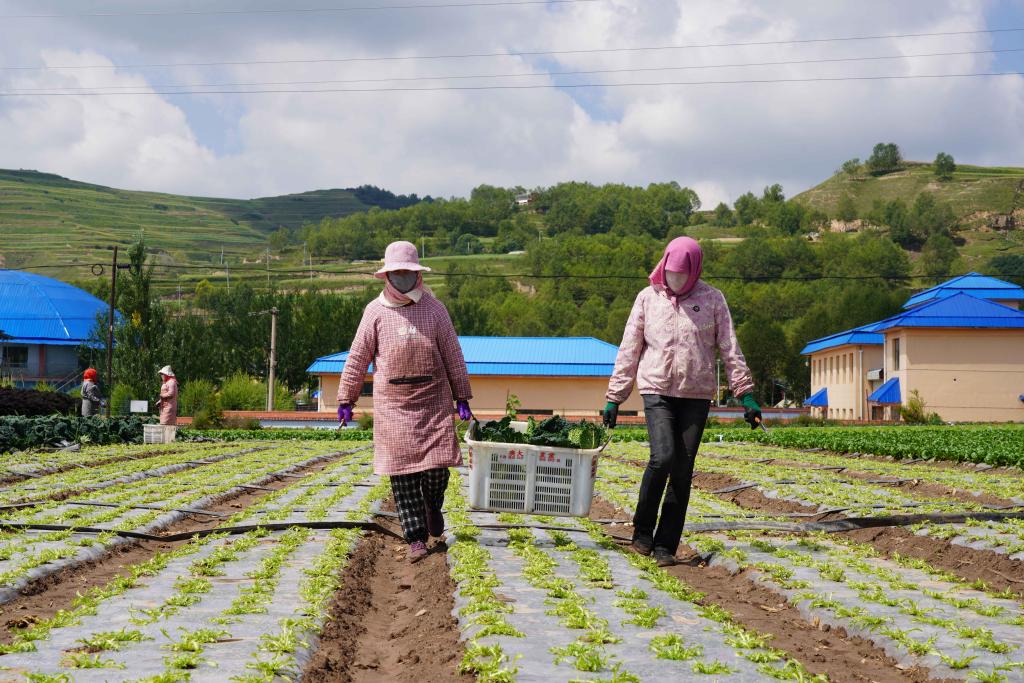 8月15日,青海省海東市互助土族自治縣臺子鄉(xiāng)塘巴村村民在“供港澳蔬菜生產(chǎn)基地”搬運蔬菜。新華社記者 王艷 攝