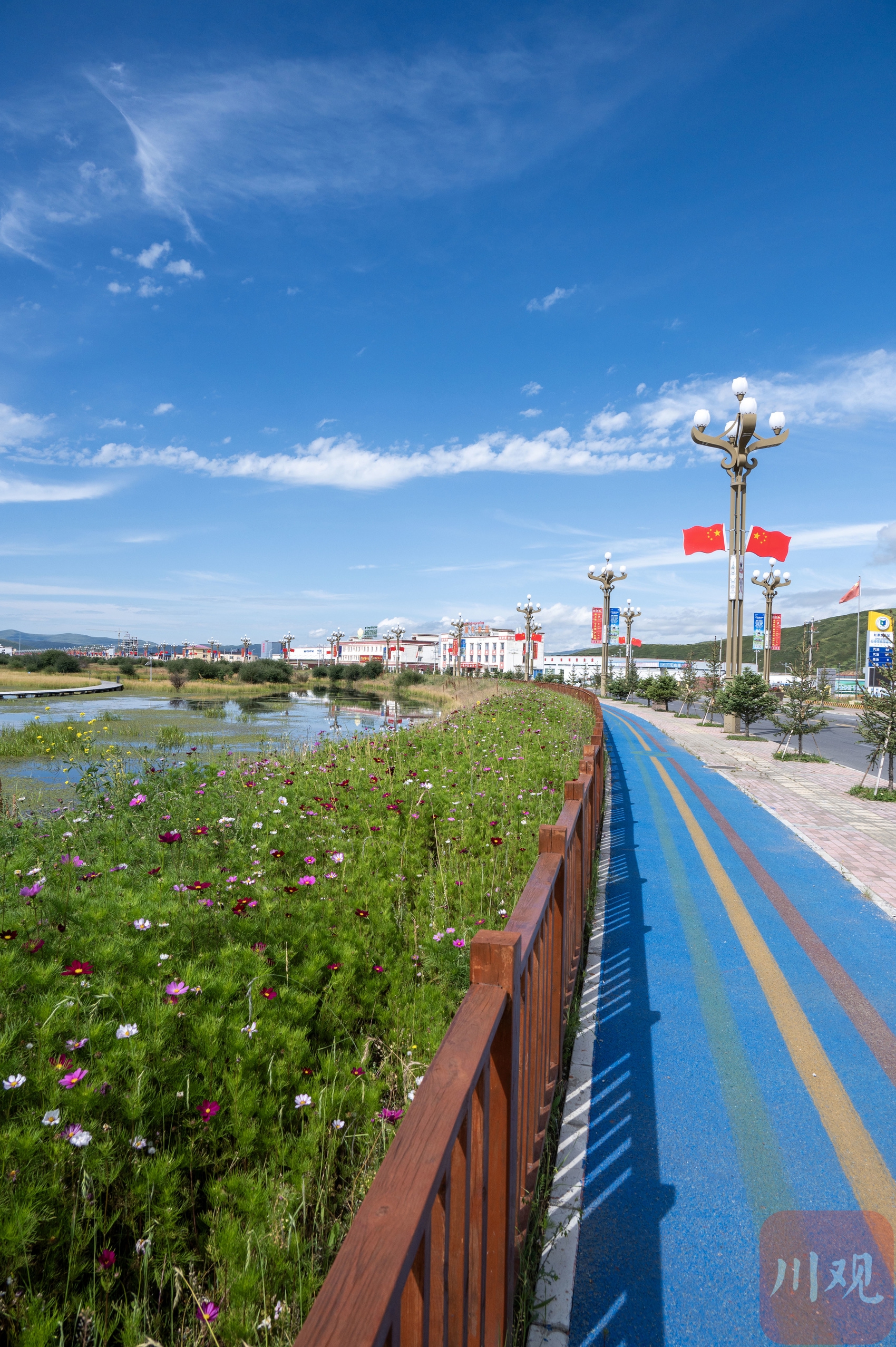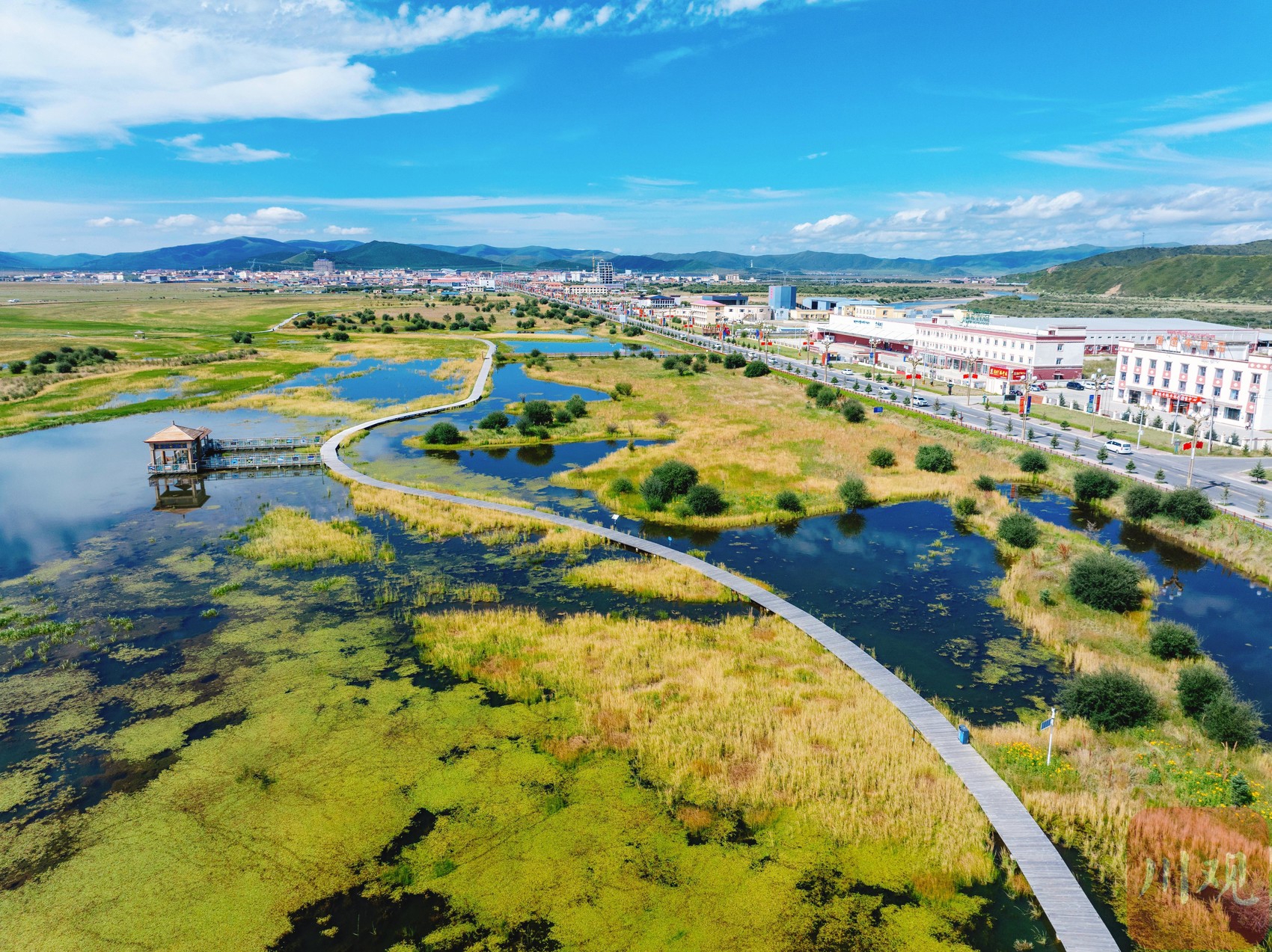 8月18日,天空高遠(yuǎn),風(fēng)光旖旎,國(guó)道旁的四川省阿壩藏族羌族自治州紅原縣邛溪鎮(zhèn)熱坤村的邛溪濕地公園已成為眾多游客的熱門打卡點(diǎn)。