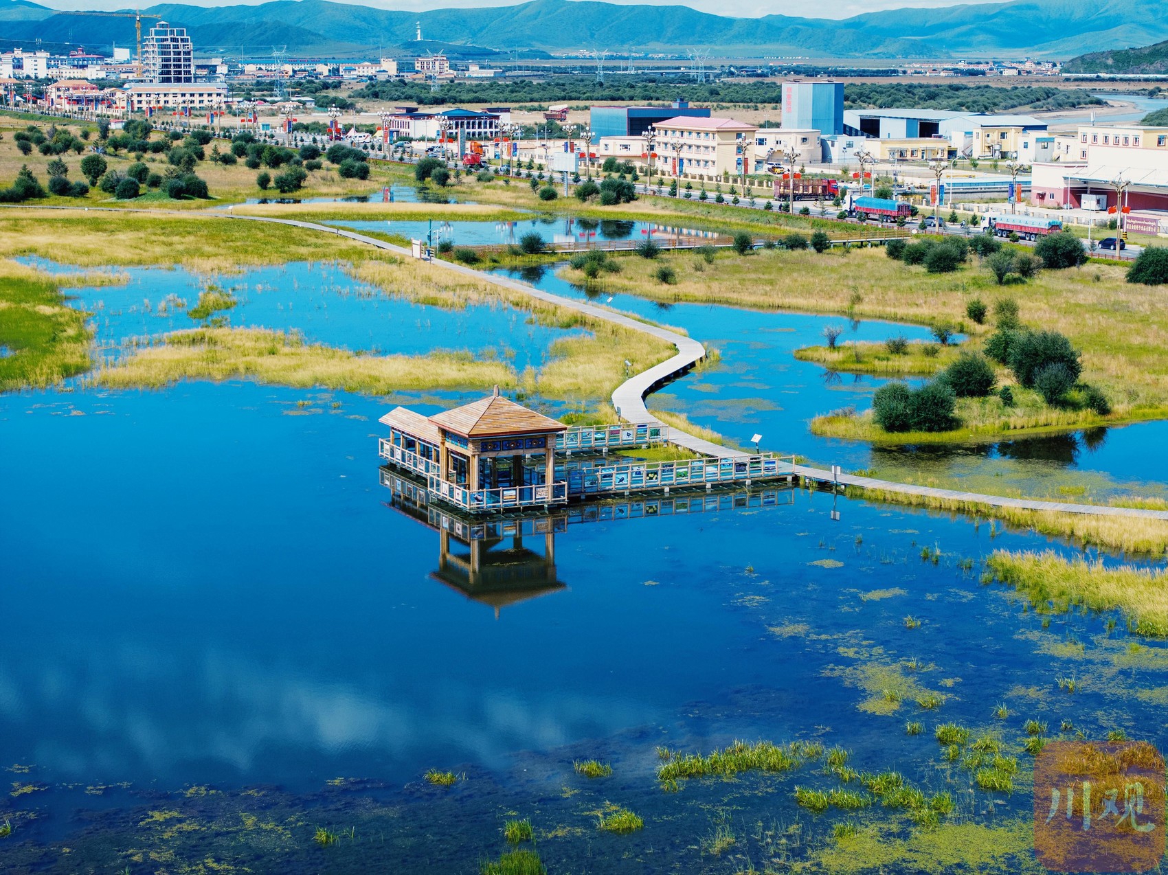 這里原本是一處污水坑。幾年前,紅原縣結(jié)合川西高原生態(tài)脆弱區(qū)綜合治理項(xiàng)目、濕地保護(hù)恢復(fù)提升改造項(xiàng)目等重點(diǎn)生態(tài)建設(shè)項(xiàng)目,通過新建擋沙壩、溢流壩、副壩等措施來(lái)強(qiáng)化蓄水保濕效果,使得大片濕地植被和生態(tài)系統(tǒng)得到了有效修復(fù),成為了國(guó)道旁的新晉打卡景點(diǎn)。