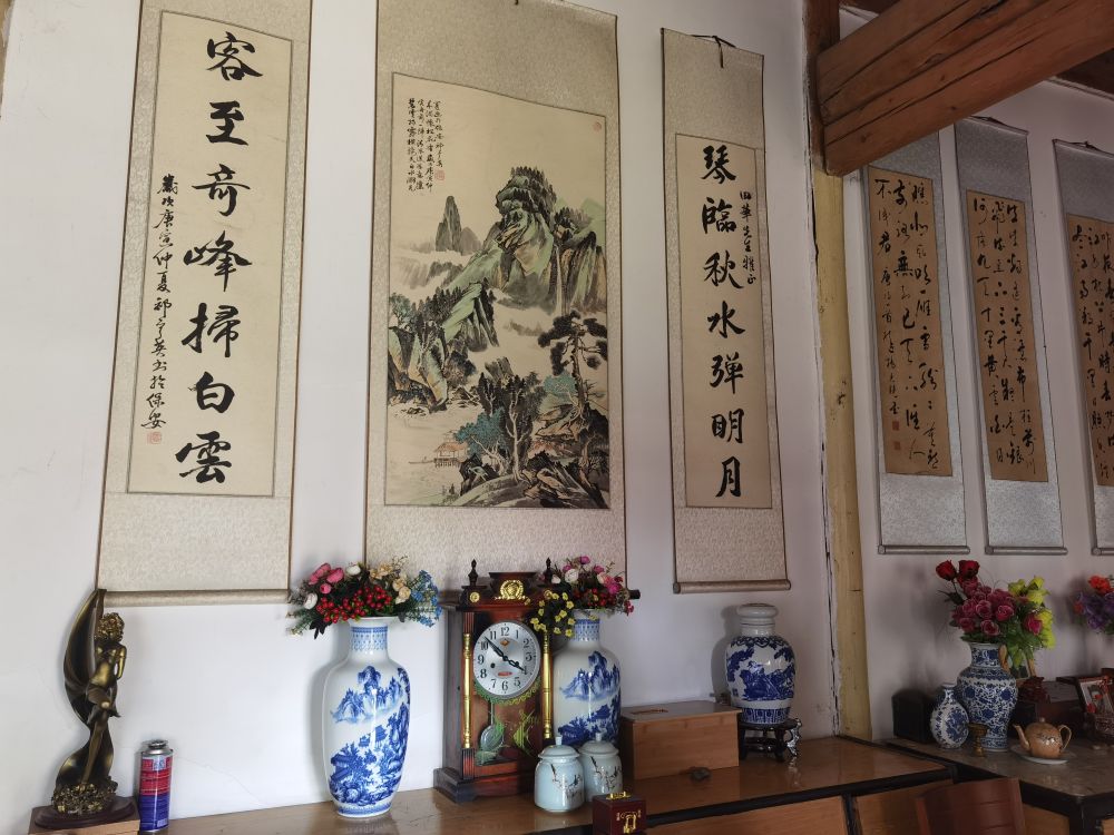 61歲土族退休教師田華的家,已有百年歷史。這所老宅完整保留了青海河湟地區(qū)農(nóng)村莊廓院的傳統(tǒng):四合院內(nèi)四面靠墻建房,庭院中花木繁茂;正房內(nèi)墻上掛有古訓(xùn)字畫,條幾上置古瓶、鏡架和銅制供器,古色古香,頗有耕讀傳家遺風(fēng)。