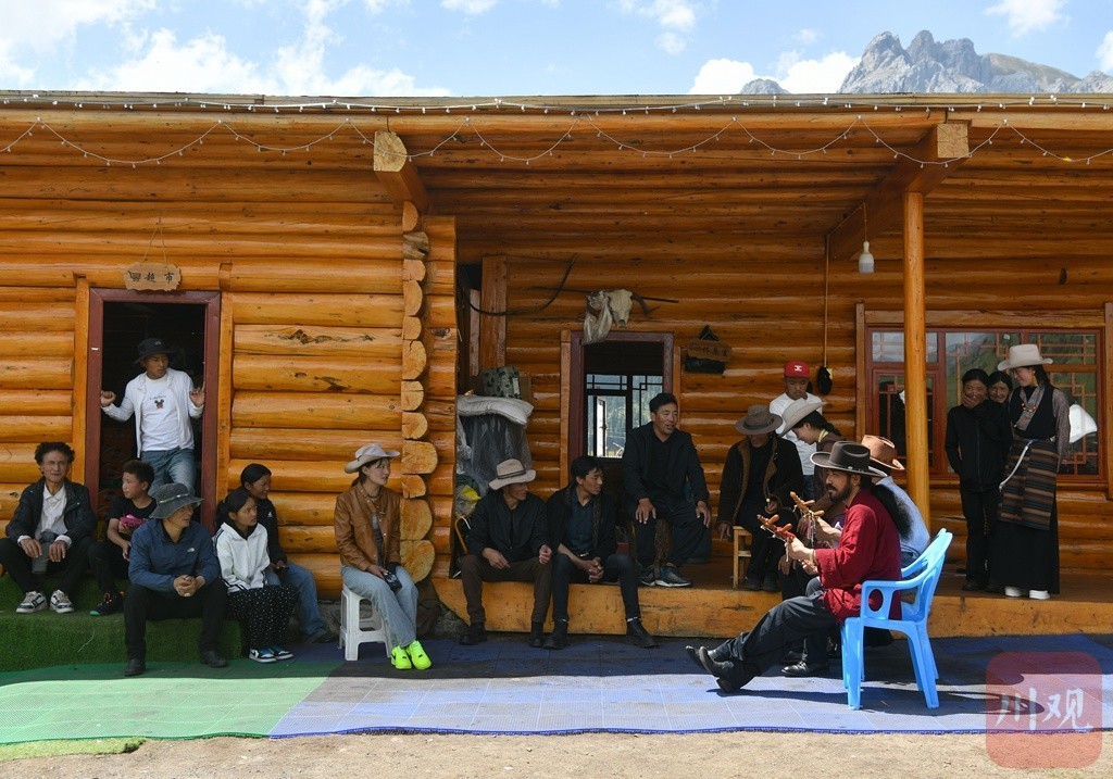 格木村村民的日常生活,在藍天下彈唱巴塘弦子。