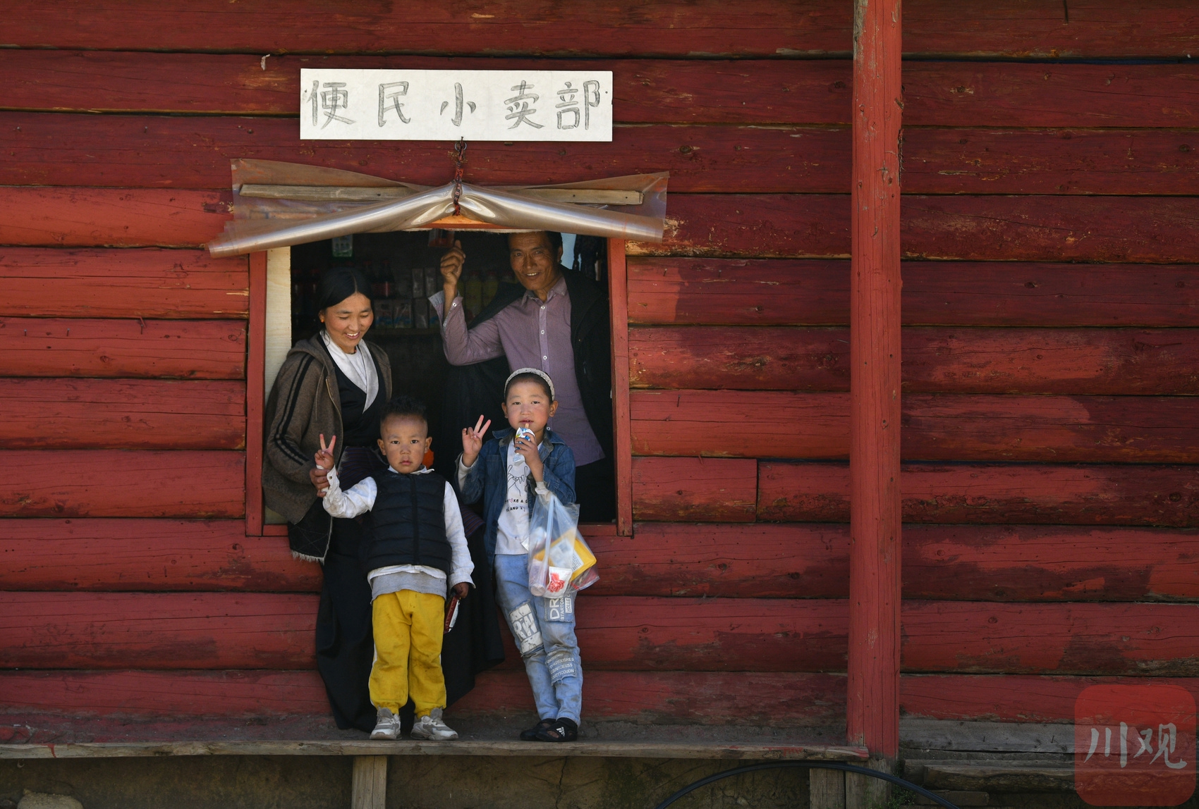 拉姆(左)在村里沖仁真開的小賣部為兩個娃買零食。