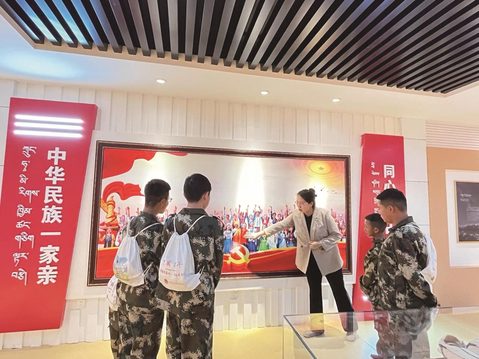 “小朋友別著急,進入下一個展廳后我就會告訴你了?!彼髂献楷斠贿吥托慕獯鹬鴮W生們的問題,一邊引領大家走進鑄牢中華民族共同體意識教育廳,她指著展廳內的一幅舊照片說,這位是久治縣和平解放初期的部落頭人康萬慶先生,他積極與當時的果洛工作團溝通聯系,是首位接觸共產主義思想的愛國進步人士,對久治和平解放、順利建政起到了非常重要的作用……